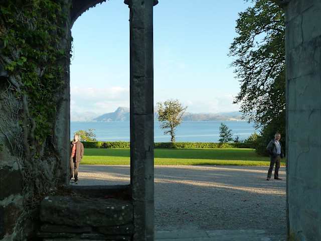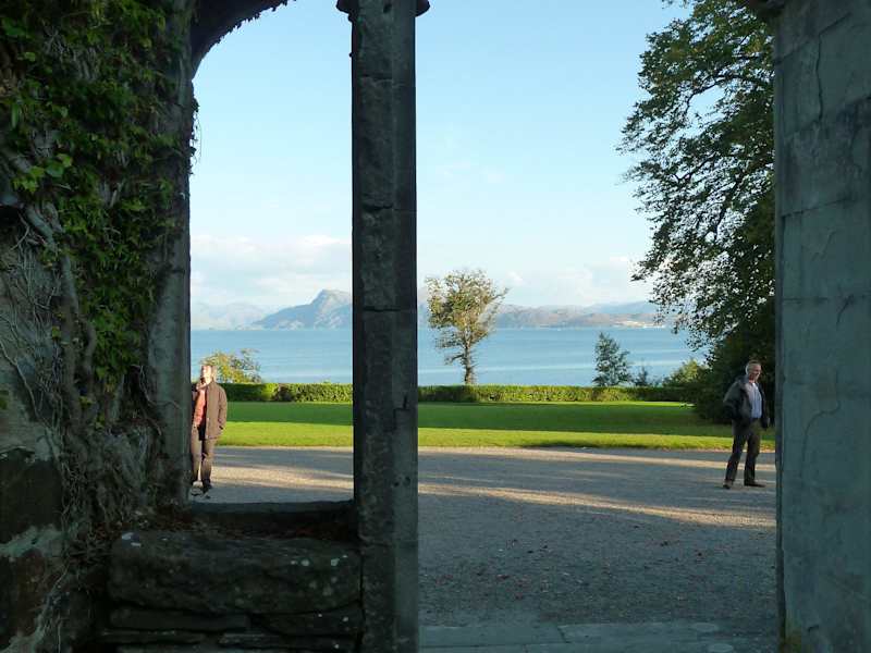 Die Armadale Ruine liegt am südlichen Zipfel der Isle of Skye inmitten eines herrlichen, mehr als 200 Jahre alten Parkgeländes. Dank des Golfstromes herrschen hier so günstige Klimaverhältnisse, dass exotische Pflanzen aus aller Welt gedeihen, wie zum Beispiel rosa und weiße Fuchsien, darüber gigantische Silberfichten und hohe Araukarien. Auch der chilenische Feuerbusch soll hier blühen. Ihn habe ich nicht entdeckt, aber dafür die riesigen Blätter des chilenischen Mammutblattes. In dem zu Beginn des 19. Jahrhunderts gebauten Schloss lebte einst der Clan Donald; nach einem Brand wurde das Schloss nicht wieder aufgebaut. Heute sind die von rotem Weinlaub überwucherten, malerischen Ruinen ein beliebtes Fotomotiv. Der Clan Donald Trust verwaltet die Ruine, den Park und ein modernes Museum der Geschichte des Clans und der Insel. Da wir erst nachmittags nach Armadale gekommen waren und noch unsere Fähre zum Festland erwischen mussten, blieb uns leider nur kurze Zeit für einen raschen Spaziergang durch den Garten zur Ruine. Schade, denn ich hätte hier gerne mehr Zeit zum ausführlichen Anschauen gehabt. Der Park ist das ganze Jahr über geöffnet. Vom 1. November bis zum 29 März ist der Eintritt frei; im Sommer kostet er teure 8.50 Pfund, doch dann ist auch der Eintritt ins Museum mit berechnet. Hunde an der Leine sind im Park erlaubt. Das Kassenhäuschen am Eingang hat eine gute Souvenir-Auswahl.