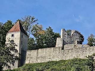 Die Kaltenburg steht auf einer Bergnase über dem Hürbe- und Lonetal. Erstmals urkundlich erwähnt ist sie 1240, Burgherr Dietmar von Kaltenburg. Ab 1331 die Grafen von Helfenstein. Bis 1821 wechselten sehr oft die Besitzer. Da wurde sie an den heutigen Besitzer Graf Maldeghem verkauft. Die Burg hat einen fünfeckigen Grundriss. Noch heute sichtbar sind die 3 Rundtürme und die beiden Ecktürme. Heute wird sie durch Spenden erhalten und kann kostenlos besichtigt werden. Es werden auch Burgführungen angeboten. Adresse: Lonetalstraße, 89537 Giengen an der Brenz Webseite: http:// www.ig-kaltenburg. de/ Geodaten: H6J6+JH Giengen an der Brenz