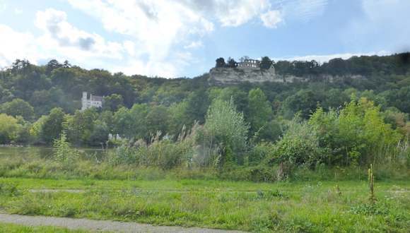 Während sich die Stadt Karlstadt am Main mit seiner durchaus schönen Altstadt am rechten Mainufer befindet, steht die Ruine Karlsburg auf einem Felssporn am linken Mainufer. Die Geschichte der ehemaligen Burg Karlsburg reicht wohl bis in das 6. / 7. Jahrhundert, wobei die hochmittelalterliche Burg, deren Ruinen man heute sieht, vermutlich um das Jahr 1200 erbaut wurde. Zerstört wurde die Karlsburg schließlich 1525 im Bauernkrieg durch die aufständische Karlstadter Bevölkerung. Vom Marktplatz in Karlstadt aus kommt man zu Fuß über die Karlstadter Mainbrücke, weiter durch den linksmainischen Ortsteil Mühlbach und einem folgenden kurzen Aufstieg nach ca. 1 km hoch zur Ruine Karlsburg. Aber bereits von der Altstadt von Karlstadt aus hat man immer wieder gute Sichtverhältnisse über den Main hinweg hoch zur Ruine Karlsburg.