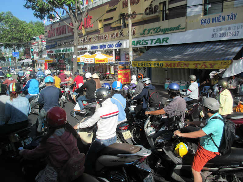 Saigon ist voller Leben. Auf den Straßen sieht man fast nur Mopeds, beladen bis an die Grenze des Möglichen. Über die Straße zu gehen erfordert "Mut". Tipp: Zielstrebig losgehen, keine abrupten Stopps o. Beschleunigungen, auf keinen Fall die Richtung wechseln. Die Mopedfahrer kalkulieren die Bewegungen der Fußgänger ein, sie fahren um sie herum, halten i.d.R. nicht an. Eine Straßenüberquerung in der Gruppe, war für mich die entspannteste (gemeinsam sind wir stark). Die Märkte haben alles was das Herz begehrt. Handeln erwünscht. Alles kann mit Dollar bezahlt werden. Tipp: Genügend 1 Dollarscheine mitnehmen. Wechselgeld erfolgt in Landeswährung. Die Häuser sind in Kolonialstil erbaut, dazwischen moderne Hochhäuser und kleine einfache Unterkünfte. Diese Mischung ergibt eine abwechslungsreiche Häuserkulisse.