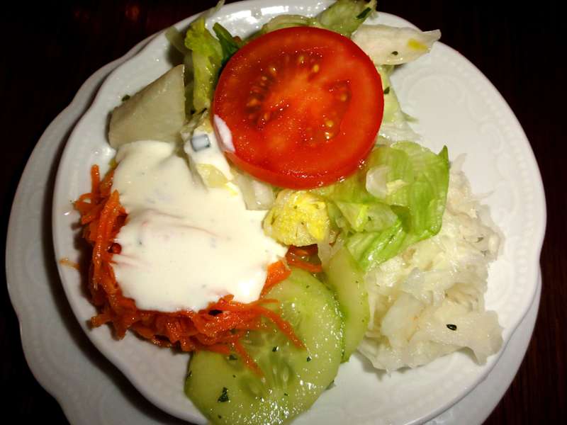 Auf Empfehlung einer Arbeitskollegin besuchte ich die „Salzburger Stuben“ unweit des Kaiserplatzes. Naja, von außen kein echter „Eye-Catcher“, aber die aushängende Speisekarte las sich schon verlockend und ich betrat das Restaurant mit der dringenden Empfehlung im Gepäck: Bestell dir ein Backhendl! Und die sind in den Salzburger Stuben wirklich einmalig gut: Knusprige, würzige Kruste und saftiges Fleisch – echte Referenzklasse! Mit einem kleinen Beilagensalat kostete das Abendessen gerade mal 8,70 Euro und in Anbetracht der Qualität und Menge ist dies absolut fair kalkuliert. Das Interieur des Restaurants ist mit seinen dunklen Möbeln und der sparsamen Dekoration wohl am besten mit „gutbürgerlich“ beschrieben, aber dabei durchaus stimmig. Die Speisekarte der Salzburger Stuben bietet neben den Hähnchen in verschiedenen Variationen auch eine Vielzahl an Gerichten aus der österreichischen und bayerischen Küche an: Leber- und Semmelknödelsuppe, Wiener Zwiebelrostbraten, Leberkäse mit Spiegelei, Salzburger Nockerl, Kaiserschmarrn mit Preiselbeeren, Gulasch oder Schnitzelgerichte – an meinen Nachbartischen wurde geschlemmt und ich werde auf jeden Fall hier wieder einkehren. Kurz: Unbedingte Besuchsempfehlung, wenn die Stilrichtung zusagt.