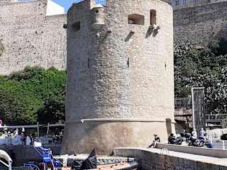 Der Salzturm, ein im 15. Jahrhundert erbauter Wachturm am Rand des Hafens, markiert die Grenze zwischen der Zitadelle und der unteren Stadt. Hier wurde früher Salz gelagert.
