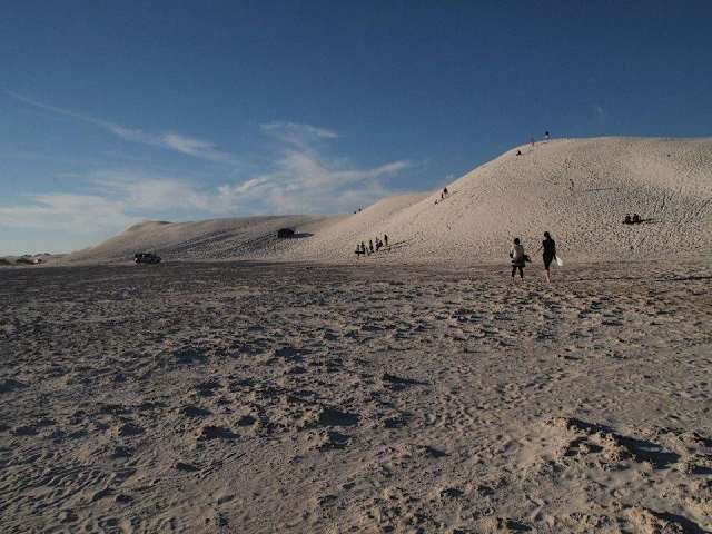 Sandboarding in den Dünen von Lancelin ist Spass pur! Schon nur der Anblick der Dünen ist faszinierend und z.B. im Abendlicht noch einmal eindrucksvoller. Tagsüber blendet der weisse Sand und man fühlt sich wie in einer Schneelandschaft, nur dass es halt Sand und heiss ist. Unbedingt sämtlichen Schmuck vorher abnehmen und möglichste keine unnötigen Gegenstände mitnehmen, die verschwinden schnell im Sand! Sonneschutz einpacken!