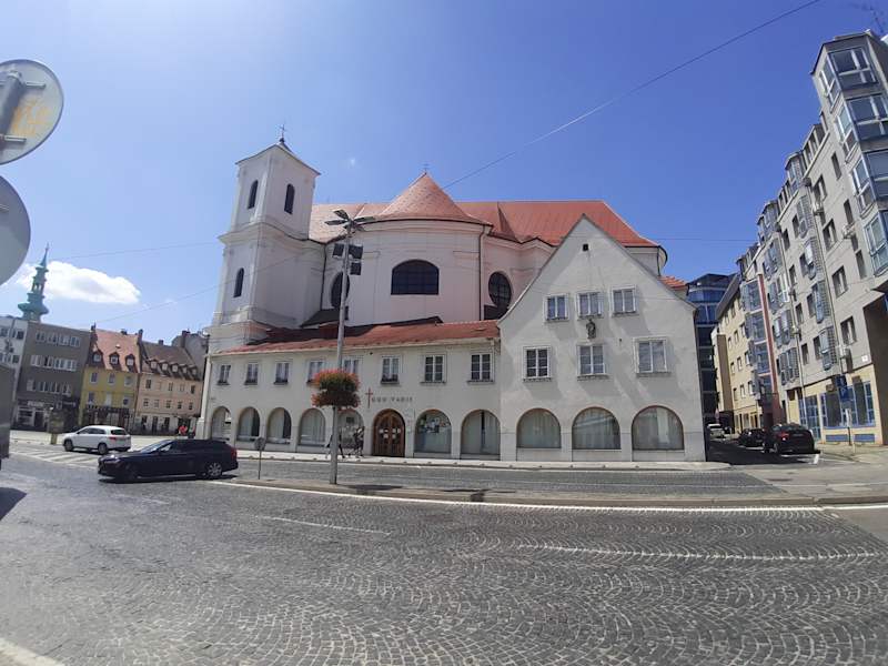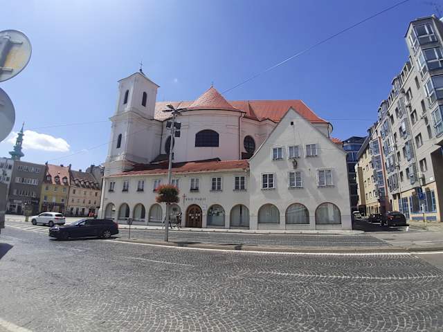 Vom Donauufer in wenigen Gehminuten zu errichen. Es liegt etwas versteckt. Wir waren wirklich erstaunt als wir mitten zwischen gewöhnlichen Fassaden das blaue Kirchlein herausragen sahen. Es ist ein absolut tolles Fotomotiv und noch dazu kostenlos.