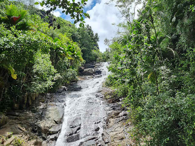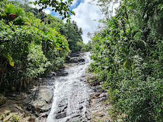 Den Wasserfall findet man nicht leicht. Es gibt keine Schilder. Ein komischer Einheimischer bat mir eine Führung dorthin an, verschwand allerdings sehr schnell wieder, nachdem ich ihm 2 Euro gab. Den Wasserfall einmal gefunden, bietet sich ein herrlicher Anblick. Vorher kommt man an einer Hütte vorbei, die die Besucher überwachen. Der Besuch ist kostenlos. Man kann sich in das Besucherbuch eintragen. Die Gegend um Port Glaud ist wunderschön. Die Strände Glasklar, wenig bis kein Wellengang und viele Mangroven.