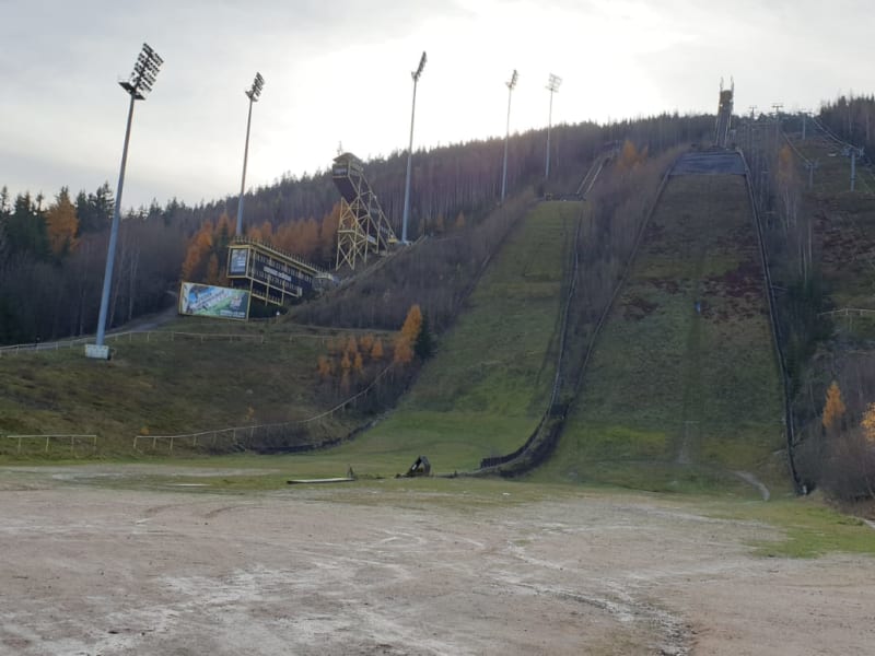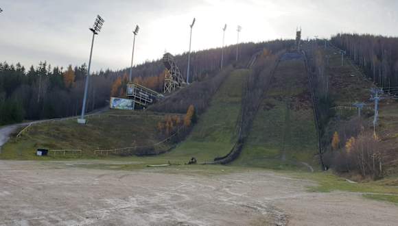 Die Schanzenanlage in Harrachov ist fast im Zentrum und gut zu erreichen. Es gibt 3 Schanzen. NAch vielen Umgestaltungen, Erweiterungen und Renovierung stehen die 5 Schanzen heute mitder Certak Flugschanze mit Weiten über 200 Metern, K120, K90, K70 und K40 zu Buche. Alle Schnazen werden vorbildlich gewartet um den Erfordernissen für internationale Wettbewerbe zu genügen. Es ist sehr beeindrucken und für Fotos top.