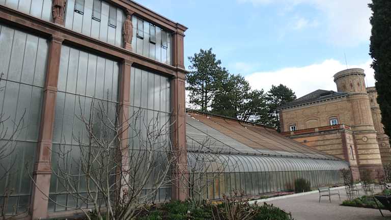 Beim Schloss in Karlsruhe gibt es mehrere Schauhäuser, das Palmenhaus, das Orchideenhaus und das Seerosenhaus. Die Gebäude bestehen aus aufwendig sanierter Glasfassade, nach historischem Vorbild gerundet und eine statisch ertüchtigte Stahlkonstruktion. Der Rundgang ist angelegt an die Originalgestaltung des 19. Jahrhunderts, welche vorsah, den Gang vom Trockenen ins Feuchte und vom Kühlen ins Warme, vom streng Gegliederten zum organisch Geschwungenen zu unternehmen. Adresse: Hans-Thoma-Straße, 76133 Karlsruhe Webseite: https:// www. german-architects. com/de/architecture-news/praxis/historisch-vorbildlich Geodaten: 297X+CH Karlsruhe