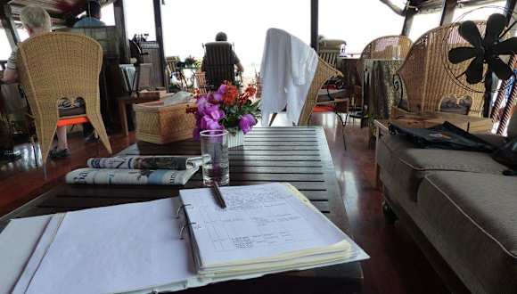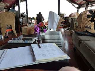 Wir waren vom 02.- 04.03.2015 an Bord. Im Anantara Riverside Hotel wurden wir von der Agentur in Empfang genommen, mit allen anderen Mitreisenden und den Reiseleitern bekannt gemacht. Beim Einchecken am Hotelpier war der Charme der alten umgebauten Reisbarke beeindruckend. Nach Begrüßung durch die Crew wurden die Kabinen bezogen. Diese waren sauber und alles Wichtige vorhanden. Das Bett (Bettwäsche schneeweiß) war über zwei Stufen zu erreichen, da sich im Souterrain das Bad befindet. Es war sehr angenehm beim Afternoon-Tea über den Chao Praya zu shippern. Die Crew war stets bemüht alle Wünsche zu erfüllen. Die Ausflüge waren gut organisiert und die persönlichen Reiseleiter sehr sachkundig. Die Zusammenstellung und Darbietung der Speisen (z.T. Langusten u. Jakobsmuscheln) war köstlich. Aufgrund der Größe der Kombüse ist die Leistung des Kochs besonders hervorzuheben. Die Kommunikation unter den Gästen war sehr gut, da es sich ausschließlich um deutschsprachige Mitreisende (2 Schweizer u. 1 Österreicher) handelte. Deshalb wurde beim Dinner eine lange Tafel (nach Zustimmung aller Gäste) hergerichtet. 1.Außenkabinen, aber sehr klein , sauber 2.Gastronomie: exzellent , sehr abwechslungsreich 3.Service: hervorragend, besonders der Schiffsmanager (Mr. Pepsi) 4.Ausflug: sachkundige persönliche Reiseleiter Diese exklusive Schiffstour hat uns sehr gut gefallen. Der einzige kleine Wermutstropfen sind die kleinen Kabinen, aber auch damit kann man drei Tage leben."
