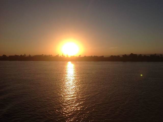 Falls Sie einen Urlaub in Ägypten planen, möchte ich Ihnen eine Schiffsfahrt auf dem Nil sehr empfehlen. Die Nillandschaft ist beeindruckend abwechslungsreich. Man fährt gemütlich an sandigen Bergen, Palmenhainen, grünen Wiesen mit weidenden Kühen vorbei. Vom Ufer winken einem lachende Kinder zu, die in kleinen Dörfern mit Moscheen wohnen, manchmal spielen sie auch Fußball. Auf dem Nil angeln die Fischer mit ihren kleinen Booten und ab und zu sieht man an Land Rauch aufsteigen, vielleicht zum Fisch grillen :-) ? Den " Kom Ombo " Tempel sieht man schon aus der Ferne stolz auf den Nil blickend. Besonders traumhaft die Sonnenuntergänge !! Ebenso lohnt sich, bei Sonnenaufgang die erwachende Landschaft zu beobachten und dem Gezwitscher der vielen Vogelarten zu lauschen. Mit einer Segelfeluke von Assuan zum Botanischen Garten auf die Insel Elephantine möchte ich Ihnen auch noch empfehlen. Von dort aus zeigt der Nil eine andere wunderschöne Landschaft. Vielleicht die Schönste, für mich jedenfalls :-) .