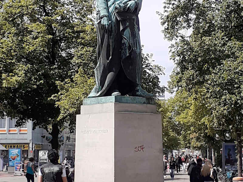 In der Fußgängerzone von Hannover steht das Schillerdenkmal.Es steht sogar unter Denkmalschutz und reicht sogar in das Königreich Hannover zurück.