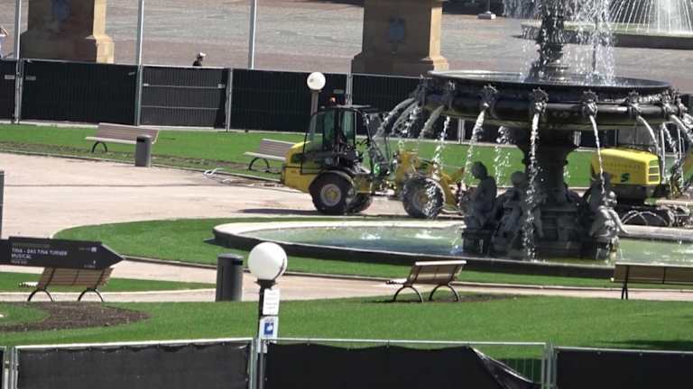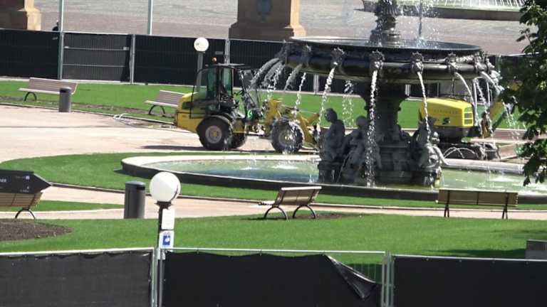 Der Schlossplatz präsentiert sich aktuell in neuer Optik - das Schloss ist ein wenig optisch in den Hintergrund gerückt, der Rasen wurde entfernt und der Boden abgedeckt - hier ist während der Europameisterschaft der Public Viewing Bereich mit großen Leinwänden.
