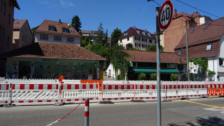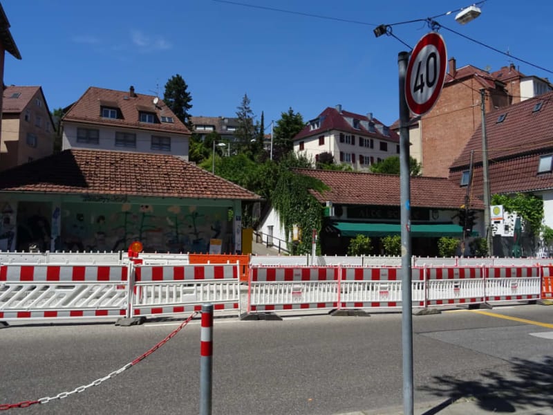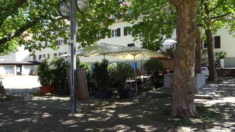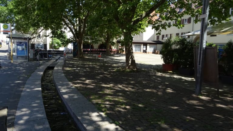 Der Schmalzmarkt in Stadtteil Gablenberg bietet sich als Pausenmöglichkeit bei einer Stadtwanderung an. Unter den Platanen kann man sich im Schatten kurz erholen oder an der am Platz gelegenen Trattoria etwas länger verweilen. Ein kleiner eingefasster Bach rundet den Platz ab.
