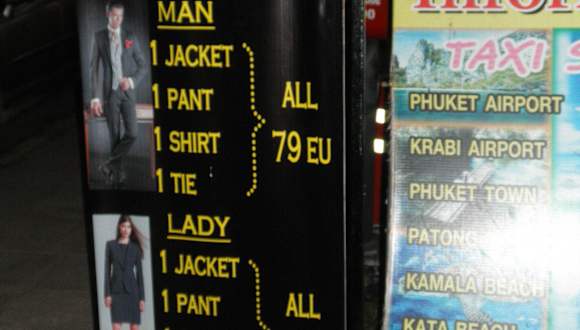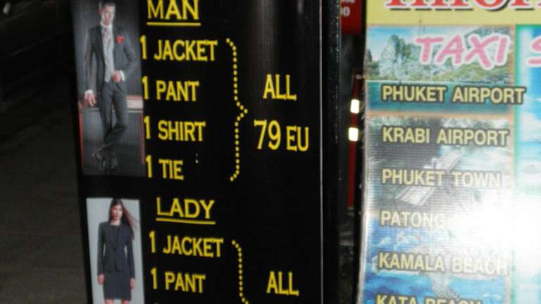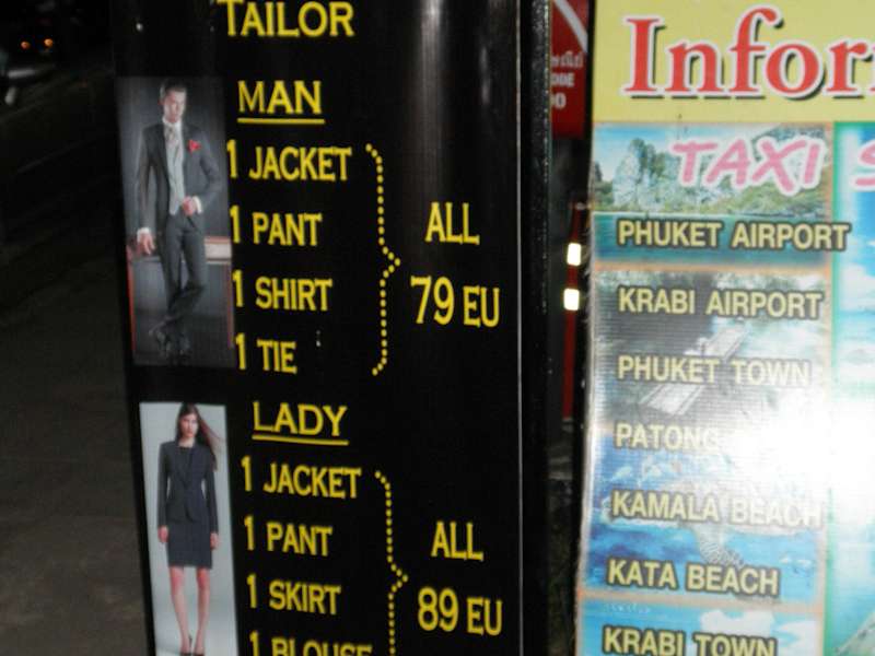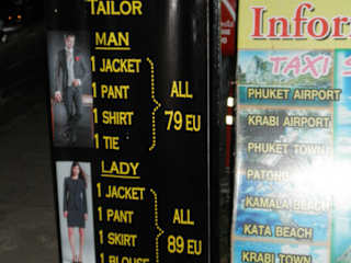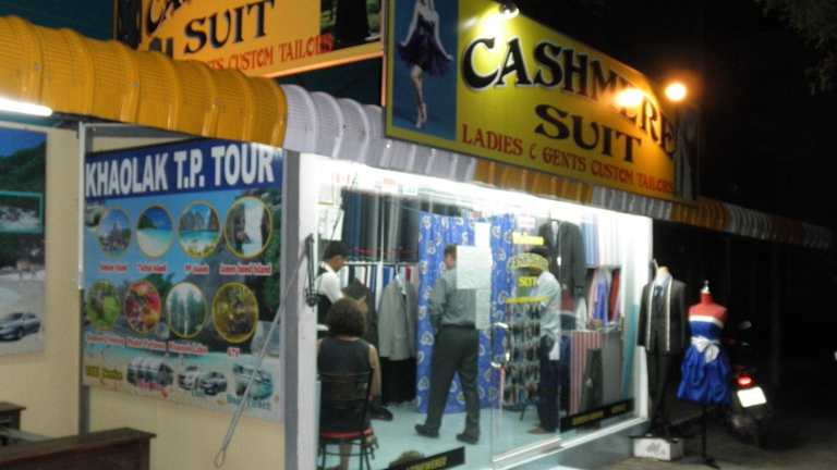 Ich habe mir dort 1 Anzug im Armani-Style und 1 Jacket aus Cashmere-Stoff, das man auch zu Jeans tragen kann, sowie 3 Hemden schneidern lassen. Das Resultat war perfekt. 2 passende Krawatten gabs als Geschenk obendrauf. In Khao-Lak gibt es über 60 Schneider, die richtige Wahl ist schwierig. Nachdem wir in einem anderen Laden keine guten Erfahrungen gemacht hatten, sind wir zu Mr. Sam gegangen. Hier hat alles tadellos funktioniert. Bei Mr. Sam erfährt man beiläufig so einiges über ihn und Thailand, er ist ein offener Mensch und hat für sein junges Alter eine sehr reife Meinung zu vielen Dingen. Die Besuche dort waren nie langweilig. Für einen stressfreien Ablauf sollte man tatsächlich grundsätzlich 7 Tage einplanen, auch wenn man bei anderen Schneidern "tomorrow ready, no problem" versprochen bekommt. Von einem auf den anderen Tag klappt das vielleicht bei Hemden, ein Anzug sitzt definitiv erst frühestens nach dem zweiten Fitting perfekt.