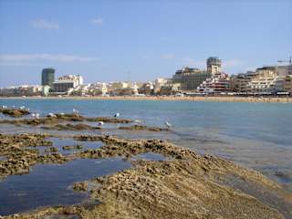 Der Las-Canteras-Strand wird von einem Steinriff geschützt. Dort gibt es zwar keine Korallen, aber trotzdem eine lebhafte Unterwasserwelt, an der man schnorcheln oder tauchen kann. Aber auch Leute, die sich nicht trauen, zum Riff zu schwimmen, können an der Unterwasserwelt teilhaben: Etwa in der Mitte von Las-Canteras ziehen sich die Felsen bis zum Strand, und bei Ebbe kann man nur 10 m vom Ufer entfernt in einem halben Meter Tiefe über die Fischgruppen (Fischschwärme wäre übertrieben) hinwegschwimmen. Ich habe im Intersport-Laden im Einkaufszentrum am Hafen einen Schnorchel mit einer Maske gekauft und war begeistert von dieser für mich neuen Unterwasserwelt. Aber bitte nicht auf den Seegraswiesen herumtrampeln, dies ist die Kinderstube der Fische. An der Promenade wird mit mehreren Schildern auf Spanisch und Englisch auf diese Tauch- bzw. Schnorchelreviere hingewiesen, und eine Erklärung zu den verschiedenen Fischarten findet man auch.