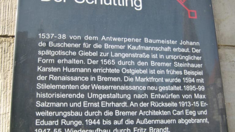 Ein in der Tat sehr schönes Gebäude der Handelskammer Bremen, über dessen Bauphasen im Verlauf der Jahrhunderte eine Infotafel am Gebäude berichtet (siehe anliegendes Foto). Bleibt die Frage: Woher kommt der Name Schütting ? Mögliche Antworten findet man auf der Seite der Handelskammer: Kommt er vom norwegischen Skotting = Versammlungshaus der hansischen Kaufleute ? Oder kommt Schütting von „schütten“ / „zusammentragen“ ? Oder leitet sich Schütting gar von „schießen“ ab ? Dazu gibt es gleich zwei Vorschläge, von denen mir der erste am besten gefällt: Innerhalb des Gebäudes Schießerei mit Kanonenkugel von Modellschiffen bei Festivitäten. Soll es gegeben haben :-). Quelle: handelskammer-bremen.de (Schütting Name - als Suchbegriff eingegeben)