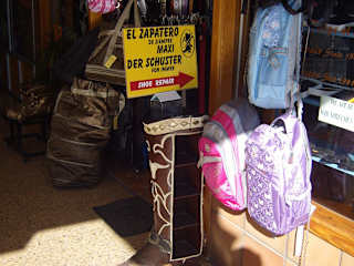 ...wenn man ihn braucht, sucht man ihn vergebens, als Betroffener, habe ich sehr lange gesucht und ihn doch gefunden :-)) Deshalb erlaube ich mir, mal einen TIPP abzugeben. Es ist: “EL ZAPATERO DE SIEMPRE” seit 1981 ! so seine eigene Aussage und Werbung, ist es der Schuster für immer (seit 1981) ! Dieser Schuster ist ganz einfach zu finden, aber nur dann, wenn man weiß wo er sich befindet :-)) In San Fernando, nach dem man in den Ort über die “Avenide de Tirajana” DURCH den Kreisverkehr auf der “GC 500" gefahren -oder gegangen- ist, liegt auf der rechten Seite vor dem Kreisverkehr: das “C.C. Ronda” ! Man begibt sich in den Kreisverkehr, hier gleich hinter dem “C. C.Ronda” rechts raus, es ist die: “Avenida de Tejeda”. In dieser Straße hinter dem “C.C. Ronda-Gebäude” grenzt gleich das “C.C. San Fernando” an, diese beiden “C. C.” gehen ineinander über. Jetzt aufgepasst, ganz ganz links, oder am Ende, dort befindet sich dieser Schuster, in der Gangmitte. Sein Erkennungsmerkmal ist, eine alte Nähmaschine, diese steht vor dem Fenster und Eingang im Durchgang, er spricht auch Deutsch. Öffnungszeiten sind: von 9:00 bis 13:30 Uhr und am Nachmittag von 16:30 bis 20:30 Uhr am Samstag von 10:00 bis 14:00 Uhr Eine Reparatur bezahlt man dort im voraus, seinen “Reparaturauftrag” kann man auch schon am nächsten Tag wieder abholen. Es ist der Laden Nr. 41 im “C. Comercial San Fernando” mit der Telefon Nr. 928 77 49 14