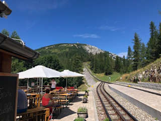 bei unserer Wanderung auf den Schneeberg kamen wir auch an der Schutzhütte Baumgartner vorbei , wo uns die wunderschön gelegene Terrasse geradezu einlud hier einen längeren Stopp einzulegen und wir wurden nicht enttäuscht hervorragendes Essen vom freundlichen Personal ausgesprochen nett serviert und zum Abschluß mussten wir natürlich auch die bekannten Schneebergbuchteln probieren die wirklich super schmecken Danke nächstes Mal sicher wieder