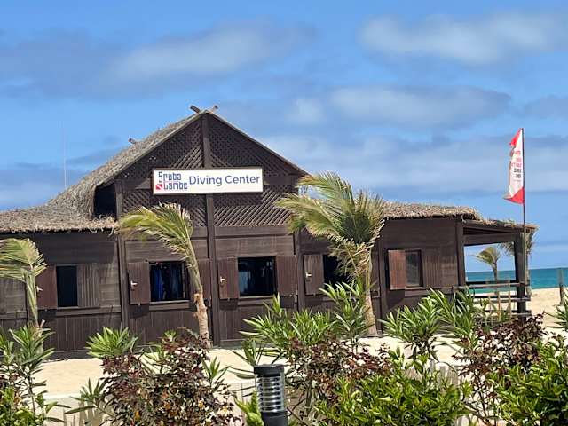 Die Scuba Caribe Cabo Verde Tauchbasis liegt direkt am Strand des RIU Funana / Garopa Resorts Der Basisleiter Miroslav spricht deutsch. Alles ist super organisiert und es wird sehr auf die Regularien geachtet (Brevet, letzter Freiwassertauchgang usw) Wir waren eine Gruppe von 5 Tauchern und haben uns für 2 mal das 20 er Paket entschieden. Wer wie viele Tauchgänge macht war egal und ein Nachkauf von Einzeltauchgängen zum Preis eines Pakettauchgangs wäre möglich gewesen, sehr fair unserer Ansicht nach. Nach dem anmelden und bezahlen ging es ans einchecken, jeder erhielt eine „private“ Kiste und sämtliches privates Equipment wurde haarklein dokumentiert. Unsere Vieltaucher sind dann gleich durchgestartet, für die anderen ging es zum Pool Check Dive mit vorherigem Theorie Auffrischung´s Test. Es gab die Möglichkeit morgens einen Doppeltauchgang und mittags einen Einzeltauchgang zu machen. Man musste sich immer einen Tag vorher anmelden, klar die Plätze auf dem Boot sind begrenzt. Treffpunkt war immer um 9.30 bzw. 14.30 Uhr, Der Anzug sowie Maske, Flossen und Blei lagen bereit. Das komplett montierte Jacket war schon aufs Tauchboot gebracht worden. Nach dem Umziehen gab es in der Regel das Briefing, mit selbst gemachten Tauchplatzkarten, direkt an der Tauchbasis. Da Sal nicht umsonst ein Kite Paradies ist, ständiger Wind mit entsprechend Wellen im Meer, konnte aufgrund der Wellen und der wechselnden Strömung manchmal erst auf der Anfahrt zum Tauchplatz entschieden werden wo genau getaucht wird, hier gab es das Brifing auf dem Boot am Tauchplatz. Fertig angezogen mit Maske um den Hals, Flossen und Blei im Gepäck, nach der Kontrolle ob jedes Buddy Team eine Boje und jeder Taucher einen Tauchcomputer hat, ging es ca. 100 m durch den Sand über den Strand zum Taxiboot. Hier kam das Material rein ins Boot, dann wurde das Boot mit vereinten Kräften umgedreht und Richtung Wasser geschoben, am Wasser angekommen setzten sich die Taucher ins Boot, die Jungs von der Tauchschule schoben das Boot mithilfe der Wellen vollends ins Wasser. Mit dem Taxiboot ging es zum eigentlichen Tauchboot das etwas weiter draußen geankert war. Dort angekommen und umgestiegen, Flossen, Blei usw. wurden umgeladen, dann ging es los zum Tauchplatz. Am Tauchplatz angekommen ging es ans anlegen des Equipments sowie den Body Check, nachdem alle fertig waren ging es hinten am Boot per Rolle rückwärts rein ins Meer, hier wurde sich an der Leine, die am Boot befestigt war, nach vorne zur Ankerleine gehangelt. Dies war Aufgrund der teilweise starken Wellen und der Strömung nicht wirklich angenehm. Als alle Taucher an der Ankerleine angekommen waren wurde an dieser abgetaucht. Alle Tauchgänge waren mit 45 – max. 60 Minuten geplant. Zum Ende des Tauchgang´s wurde in der Regel an der Ankerleine wieder aufgetaucht. Obligatorisch natürlich der Safety Stop 3 min auf 5 m. An der Oberfläche angekommen wurde sich wieder an der Leine nach hinten ans Boot gehangelt. Sämtliches Equipment wurde aufs Boot gereicht, nur im Anzug war der Einstieg ins Boot recht einfach. Auf dem Boot wurde sofort das Jacket und der Automat abmontiert. Nachdem alle mit angezogenem Jacket und umgehängtem Automat Platz genommen hatten ging es zurück zum Taxiboot. Dort der Umstieg in selbiges mit komplettem Equipment außer den Flaschen ging es Sturmbootmäßig zurück zum Strand. An der Tauchbasis angekommen standen verschiedene Becken mit klarem Wasser zum waschen des Equipment sowie genügend Kleiderbügel zur Verfügung. Alle gemachten Tauchgänge wurden mit Datum und Tauchplatz in eine Persönliche Liste eingetragen, perfekt zum späteren Logbuch schreiben. An der direkt neben der Tauchbasis gelegenen Strandbar des RIU konnten dann auch gleich das Dekogetränk zu sich genommen werden :-)