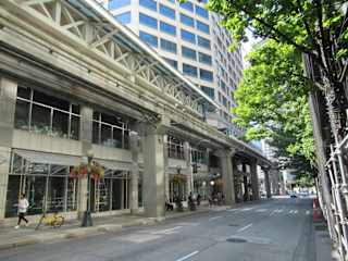 In der Nähe des Seattle Center ( Space Needle ) fährt eine Monorail bis zur Westlake Mall. Die Fahrt dauert ca 5 Minuten ist also nicht lang, aber ein Erlebnis hoch über den Strassen von Seattle die Autos zu überholen. Die Fahrt kostet one way 2,50 US Dollar 65 plus 1,25 US Dollar, also auch nicht übermäßig teuer.