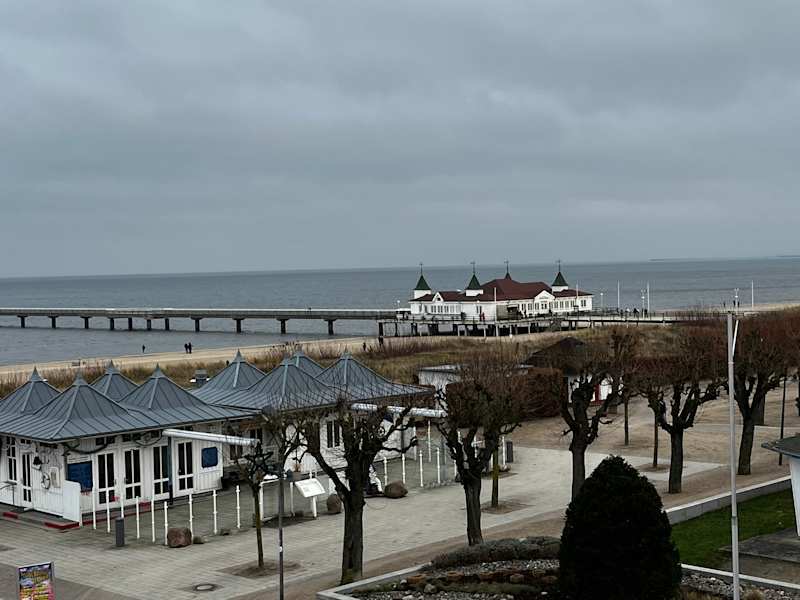 Speisen auf einer Seebrücke? In Ahlbeck ist das möglich. Lauft über die Seebrücke zum Lokal und von dort aus weiter auf der Seebrücke entlang. Überall sind Bänke zum ausruhen. !Parkplätze sind in der Ecke knapp!
