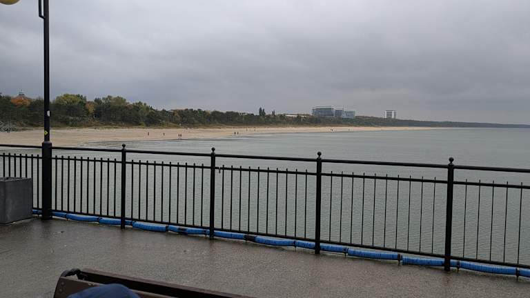 Flanieren, sehen und gesehen werden – dafür ist die 395 Meter lange Seebrücke von Miedzyzdroje / Misdroy ein guter Ort. Wenn hier die Ausflugsschiffe und Fähren / Linienboote (z.B. von den deutschen Ostseeorten auf Usedom) ankommen, ist hier meist sehr viel Betrieb (und teils auch Hektik). Wenn jedoch dieserr Ansturm vorbei ist, wird es wieder spürbar ruhiger. Dann kann man auch den schönen Ausblick auf den Ort, die Küste und auf die Ostsee genießen. Am Abend – bei schönem Sonnenuntergang - kann es hier dann sehr romantisch werden.