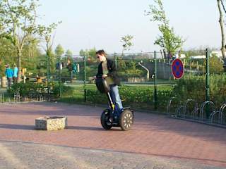 Durch Zufall sind wir beim Gang durch das Städtchen am Ocean-Wave auf einen Anbieter von Segway-Touren gestoßen. Segways sind diese seltsam anmutenden Fahrzeuge, die durch den Film "Kaufhaus-Cop" bekannt geworen sind. Es werden sowohl Einzelfahrten als auch geführte Touren angeboten, wobei die Fahrt in der Gruppe am Abend natürlich Riesenspaß macht. Es sind durchweg neue Fahrzeuge. Man wird auf jeden Fall eingewiesen und hat schon bald keine Angst mehr vorm Fahren. Das Thema ist, dass man am Ende der Tour gar nicht mehr absteigen will. Bei den Preisen sollte man mal sprechen; es geht auch mal günstiger und als Gruppe auch mit Rabatt. Ein einmaliges Erlebnis mit dem Teil über den Deich und die Mole zu "fegen". Im Netz unter:http://segteam-norden.de/ oder eben am Ocean-Wave neben dem Abenteuergolfplatz, der auch unterhaltsames Golfen aufkommen lässt. Es hat auf jeden Fall Riesenspaß gemacht. Aber: Führerschein oder Prüfbescheinigung für Mofa sind Pflicht!
