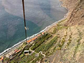 Wenn man nach dem Urlaub über das Erlebnis nachdenkt, welches wohl den meisten Eindruck hinterlassen hat, dann ist es bei mir die Fahrt mit der Seilbahn nach Fajã dos Padres und der nachfolgende Spaziergang durch den schmalen Streifen intensiv bewirtschafteten Kulturlandes zwischen Steilwand und der Brandung des Atlantiks. Früher lediglich von See oder über einen Aufzug erreichbar, steht Fajã dos Padres inzwischen durch eine neue Seilbahn mit dem „Oberland“ in Verbindung. Von der VR1 kommend, verlässt man die Schnellstraße an der Abfahrt Nr. 3 (Ausschilderung „Cabo Girão/Quinta Grande“) und folgt dann dem Wegweiser zur Seilbahn. Die vernünftig ausgebaute Straße erreicht nach wenigen Kilometern den Wendeplatz vor der Bergstation der Bahn und dort kann man auch sein Auto problemlos einfach am Wegrand parken. Schon der Blick in die Tiefe neben der Station lässt erahnen, dass die 300 Höhenmeter in Erinnerung bleiben werden! Am Ticket-Schalter bekommt man die Fahrkarte (10 € für Hin- und Rückfahrt - Stand 5/2019) und erhält Zugang zu einer der beiden Gondeln, in denen maximal 8 Personen Platz finden – meistens fährt man allerdings alleine. Unglaublich steil geht es für knapp vier Minuten in die Tiefe und die Blicke über den Atlantik und die Steilwände der Klippe sind dabei einzigartig schön. Die Seilbahn Fajã dos Padres fährt rund um das Jahr zwischen 10 und 18 Uhr und zusammen mit dem Spaziergang durch das landwirtschaftlich genutzte und sehr fruchtbare Terrassenland hat sich dieser Ausflug einen Spitzenplatz auf meiner persönlichen „Must-have-seen“-Liste für Madeira reserviert.