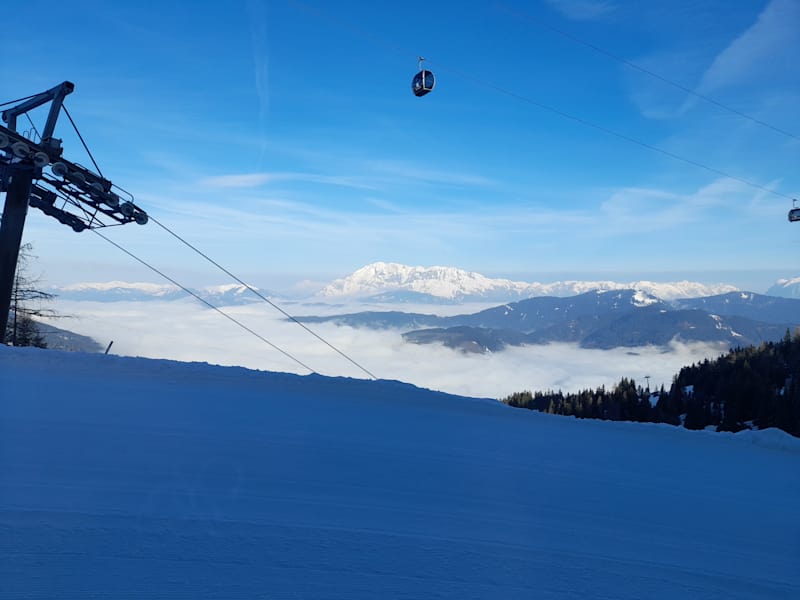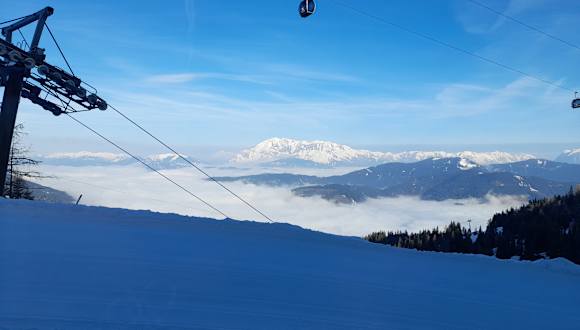 Diese Seilbahn ist die neueste und längste von 3 Bahnen dieser Art, die 2 Berge auf ca. einem Drittel der Höhe dieser Berge geradlinig verbindet. Dabei legt sie eine Strecke von 2000 Metern ohne Zwischenmasten und in einer Höhe von 200 Metern über Wagrain zurück. Es gibt 2 Bahnen, die sich in der Mitte begegnen. Man schwebt mit dieser Bahn wie in einem Zeppelin dahin und geniesst die herrliche Aussicht. Im Sommerbetrieb, bis Ende August, fährt die Bahn jedoch nur jeden Donnerstag.