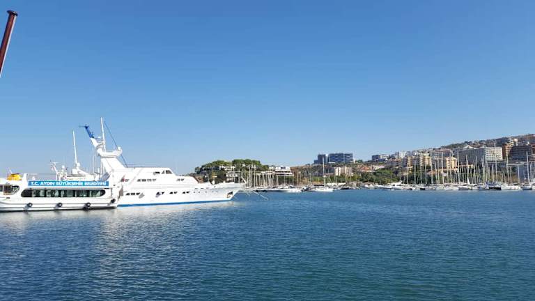 offene Marina- zugänglich ohne Einschränkungen...Besichtigung aller Boote vom Pier uneingeschränkt möglich...keine Mega- oder Gigayachten...Superyachten bis ca. 50m zu sehen...vom äußersten Punkt der Marina eindrucksvoller Blick auf Kusadasi bzw. wenn gerade vor Ort auf die Kreuzfahrer...zur Marina gehörendes modernes Center mit besseren Restaurants und Geschäften..."Walk-Way" von dem ein guter Blick von oben auf die Bootswerft möglich ist...