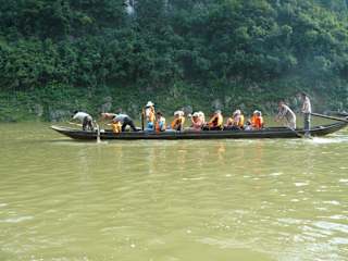Von unserer Flußkreuzfahrt machten wir am 2. Tag einen Ausflug zu den Treidlern am Shennon Fluß. Wir wurden mit einem kleinerem Motorschiff abgeholt und dann ging die Fahrt ca. 90 Minuen flußaufwärts den Shennon Fluß hoch. Vorbei an einer großen Tropfsteinhöhle, und an den hängenden Särgen, die vor vielen Jahren in bis zu 100 Metern Höhe aufghängt wurden, eine alte Tradition. Dann kamen wir an einer Station an, wo das Motorschiff nicht mehr weiter konnte, wir stiegen in kleine Bote um, diese wurden von 4 einheimischen, die bis zu 75 Jahre alt waren ( Hut ab ) über eine Stunde flußaufwärts gerudert, dann wurden die Boote nach alter Tradition getreidelt, das heißt die Boote wurden mit einem Seil vom Ufer von den Leuten flußaufwärts gezogen. Dann ging es die ganze Tour zurück, Gesamtdauer ca 6 Stunden, sehr erholsam wenn das Wetter mitspielt.