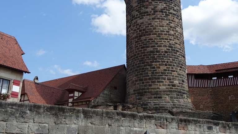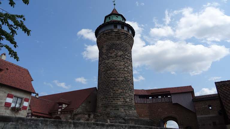 Der Turm ist das weithin sichtbare Erkennungszeichen der Kaiserburg in Nürnberg. Die Spitze des Turms ragt etwa 100 Meter über das Niveau des Hauptmarktes hinaus, aber dafür muss man auch etliche Stufen überwinden – kein leichter Aufstieg bis zu dem spektakulären Ausblick.