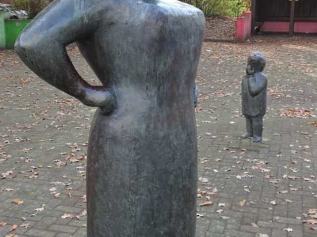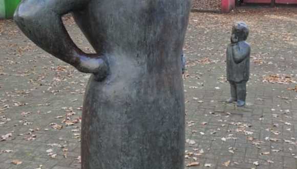 Infos Skulptur Erdbeerpflückerin mit Kindern