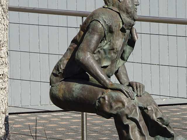 Außerhalb der Altstadt - gegenüber dem Gasthaus Krone findet man die Skulptur. Von etwas Entfernung und ohne Infos ist man evtl. ein wenig irritiert über die Darstellung, von näherem erschließt sich die Skulptur.