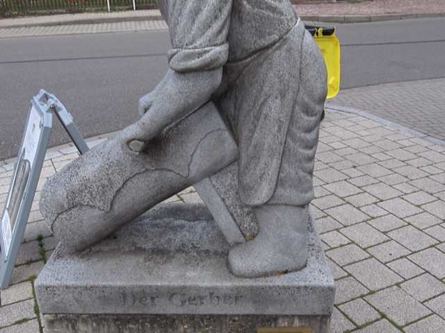 Altensteig war bekannt für seine vielen Gerbereien. An der Rosenstraße waren viele Gerber sesshaft. Deshalbsteht auch hier ein Denkmal für die Gerber. Auf einem Steinpodest ist das Gerben eines Gerbers zu sehen. Er bearbeitet ein Fell. Die Skulptur ist aus einem Steinblock herausgearbeitet. Adresse: Rosenstraße 1, 72213 Altensteig Geodaten: HJM3+VQ Altensteig