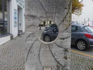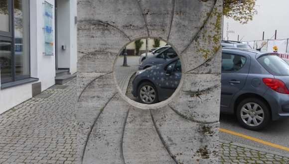 Nur wenige Meter südlich vom Marktplatz von Gerolzhofen steht in der Breslauer Straße die Skulptur Wirbel des Lebens. Wenn man am Marktplatz oder beim sogenannten „Botanischen Garten“ ist, so würde ich die wenigen Meter bis zu dieser Skulptur schon empfehlen, aber einen größeren Umweg würde ich deswegen jedoch nicht machen.
