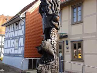 Wer durch die Altstadt von Rotenburg an der Fulda schlendert, kommt wohl kaum daran vorbei: Seit dem Jahr 2000 entstehen hier im Rahmen eines privat finanzierten Projektes lebensgroße Bronzeskulpturen, die charmant Alltag und Vergangenheit der Stadt darstellen. Zunächst waren nur 5 Kunstwerke geplant und inzwischen sind daraus 11 Ensembles geworden: An der Fuldabrücke sitzen zwei Jungs, die sich gerade von der Anstrengung des Spieles erholen, ein Hütejunge hält seine Ziege, die am Grün der Stadtmauer knabbert, eine Diakonisse mit einem kleinen Dackel an der Leine ist auf dem Weg zur Kirche und vor dem Rathaus ratschen drei Marktfrauen, derweil ihr Hund unbemerkt mit seinem Kopf in den Tiefen des Einkaufskorbes verschwindet. Liebenswert sind sie, die Werke des Skulpturenpfades – in der Touristeninformation erhält man ein Verzeichnis der Standorte und der Besuch lohnt sich auf jeden Fall.