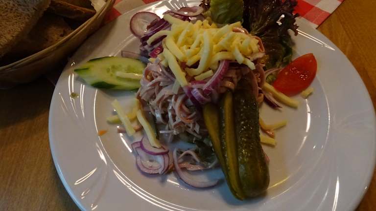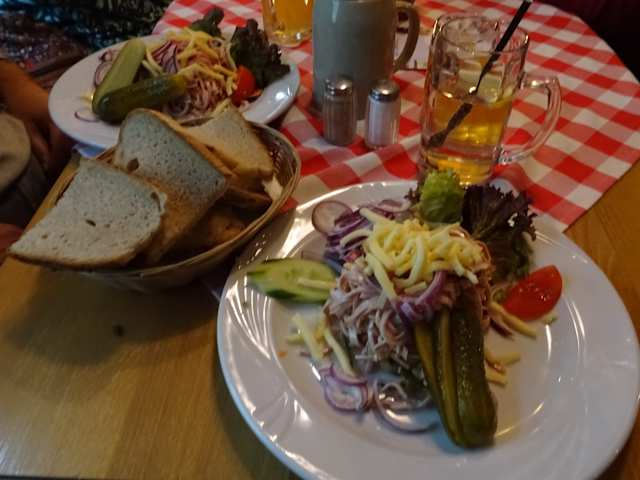 Das Restaurant war sauber, hatte sogar einen "Biergarten" vor dem Lokal, aber aufgrund des kühlen Windes saßen wir innen. Die Lage des Restaurants war in einer Art Hof, eher ein kleiner Platz, in der Altstadt von Bad Cannstatt, weswegen kein direktes parken beim Lokal möglich ist. Ab ca. 19:00 Uhr und an Samstag sowie Sonntag kann man jedoch beim Amtsgericht in der Badstraße kostenlos parken, was nicht weit entfernt liegt. Man musste merklich länger wie üblich warten, bis man bedient wurde. Anstatt Tee mit Milch und Zucker bekam ich 4 Scheiben Zitrone serviert, was jedoch auf meinen Hinweis schnell ausgetauscht wurde und ich nicht als "Problem" ansehe, da dies mir schon auch bei anderen Gelegenheiten falsch serviert wurde. Wir haben den Rostbraten mit Bratkartoffeln (bei beiden "medium") probiert. Bei meiner Begleitung war der Rostbraten in Ordnung. Bei mir war das Fleisch bis auf eine Stelle direkt schon zäh und zum Glück habe ich gute Zähne. Die "Bratkartoffeln" waren nicht gebraten, sondern deutlich erkennbar aus der Fritteuse, aber schmeckten gut. Man musste nur noch würzen (Salz und Pfeffer stand auf dem Tisch). Die Fleischqualität entsprach nicht dem Preis-Leistung-Verhältnis. Fazit: Wir haben schon deutlich besser gegesen und es bleibt beim einmaligen Rostbratenessen.