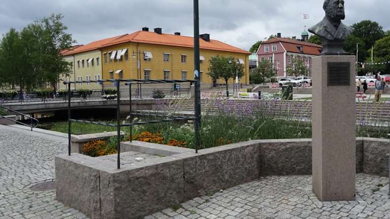 Ohne darauf aufmerksam gemacht zu werden läuft man vermutlich an der "Speakers Corner" in Alingsas vorbei. Eine leichte Erhebung neben der Büste von Charles Hill - das war es. Aber immerhin - es gab bzw. gibt sie. Und irgendwie passt es zu dem kleinen gemütlichen Ort, dass auch diese klein und unaufgeregt ist.