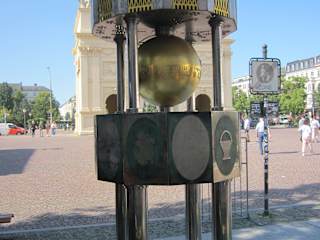 Nahe dem Brandenburger Tor und dem Luisenplatz in Potsdam steht an der dortigen Brandenburger Straße ein funktionales Kunstobjekt: Die Potsdamer Spieluhr. Sie wurde nach aufwändiger Restaurierung (in die auch viele Spendengelder flossen) 2010 am dortigen Platz wieder aufgestellt, nachdem das von Gottfried Höfer geschaffene Kunstwerk dort bereits 1979 erstmals seinen Standort gefunden hatte. In der Mitte der Spieluhr befindet sich eine goldglänzende Kugel, die die Uhrzeit anzeigt. Zu jeder vollen Stunde ertönt ein Glockenspiel. Unter der Kugel sind große Metallplatten angebracht, die auf in Potsdam ansässige Wissenschaften und Gewerke hinweisen wie u.a. die Astronomie und die Havel-Fischerei. Ganz oben auf der übermannsgroßen Spieluhr sind Potsdamer Architektur-Sehenswürdigkeiten eingraviert wie das Nauener Tor oder der Einsteinturm. Übrigens war die Uhr am 7. Oktober 1989 Treff- und Ausgangspunkt der ersten großen und friedlichen Demonstration Potsdamer Bürgerrechtler.