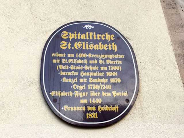 Die Spitalkirche St. Elisabeth wurde lt. der Tafel im Jahre 1400 erbaut. Das Obergeschoss hier waren die Pfründnerwohnungen untergebracht, über dem Eingangsportal die Heiligenfigur von St. Elisabeth selbst. Der Brunnen vor der Kirche wurde im Jahre 1821 erbaut. . Adresse: Spitalgasse 4 91217 Hersbruck . Telefon: 09151 2081324 . Internet: www.hersbruck-stadtkirche. de