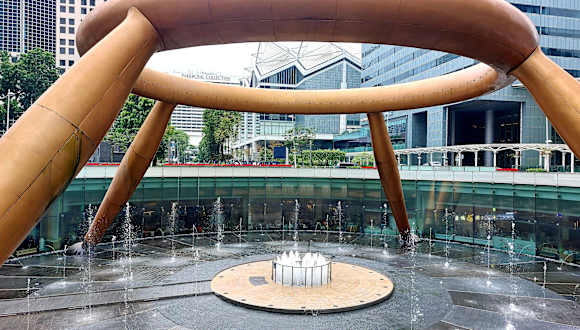 Der Fountain of Wealth, der sich inmitten der Suntec Shoppingmall befindet, ist der größte Brunnen weltweit. Eingeweiht wurde der 14 Meter hohe Brunnen 1997 und gefertigt ist er aus Silikonbronze. Zudem folgt er den Feng-Shui Prinzipien. Der Brunnen steht dadurch nicht nur für Reichtum, Wohlstand und Erfolg, sondern im Allgemeinen für positive Energie. Das zieht natürlich zahlreiche Menschen an, die fest daran glauben und davon profitieren möchten. Vom Foodcourt der Mall im EG aus gibt es einen Zugang zum Brunnen. Man stellt sich in die Warteschlange und wartet bis man drankommt den Innenraum der Mall mit dem Brunnen betreten zu dürfen. Maximal dürfen nur etwa 20 Personen gleichzeitig hinein, die dann den Brunnen dreimal umrunden und sich in der Gischt baden dürfen. Dabei kann man sich dann etwas wünschen. Wer nur einen Blick auf den Brunnen werfen möchte, nimmt einfach die Wendeltreppe und geht eine Etage höher. Von dort oben aus hat man einen freien Blick auf den Brunnen, während man im EG nur durch die Glasscheiben schauen kann. MRT Promenade https://sunteccity.com.sg/fountain_of_wealth