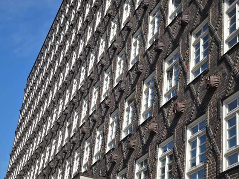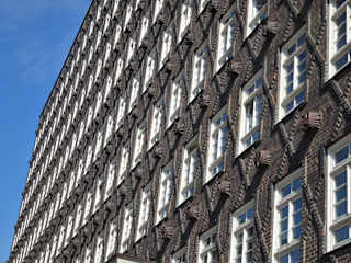 Der neungeschossige Kontorhaus "Sprinkenhof" befindet sich im Hamburger Kontorhausviertel. Der Komplex wurde zwischen 1927 und 1943 in drei Bauabschnitten nach den Plänen der Architekten Fritz Höger sowie Hans und Oskar Gerson in Skelettbauweise aus Stahlbeton errichtet. Als Vorbild dienten der Dogenpalast in Venedig und das Casa de las Conchas in Salamanca. Zwischen 1999 und 2002 wurde das Gebäudeensemble umgebaut und umfassend saniert. Der aus drei Gebäudeblöcken bestehende Sprinkenhof ist eines der Hauptwerke des Backsteinexpressionismus, seine Fassade ist mit einem rautenförmigen Klinkermuster überzogen. Als Teil des Kontorhausviertels wurde der Sprinkenhof 2015 in die Liste des UNESCO-Weltkulturerbes aufgenommen. Homepage: https://www.sprinkenhof-hamburg.de/de/sprinkenhof/