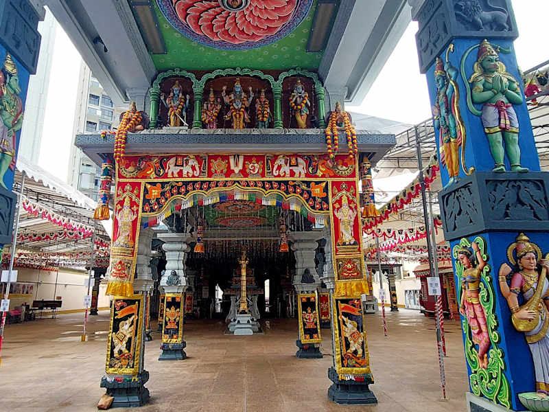 Der Sri Srinivasa Perumal Temple ist wie der Sri Veeramakaliamman Tempel ein weiterer Hindutempel an der Serangoon Road, liegt aber nicht im Zentrum von Little India und somit weniger überlaufen. Er strahlt eine angenehme Ruhe aus. Obwohl bereits 1855 ein tamilischer Händler am Standort des Srinivasa Perumal Tempel eine Gebetsstätte errichtet hat, stammt der heutige Bau aus dem Jahr 1979. Der reiche und stadtbekannte südindische Geschäftsmann Govindasamy Pillai hat den Tempel, der Shiva geweiht ist, finanziert. Dominiert wird der Tempel von einem etwa 20 Meter hohem Tempelturm (Gopuram), der mit zahlreichen Götterfiguren geschmückt ist. Der Sri Srinivasa Perumal Tempel Ist Ausgangspunkt der Thaipusam Prozessionen. Man kann den Tempel kostenlos besuchen, Spenden sind willkommen. Beim Betreten müssen die Schuhe ausgezogen werden. 397 Serangoon Road Singapore 218123 MRT Farrer Park (NE 8) https://sspt.org.sg