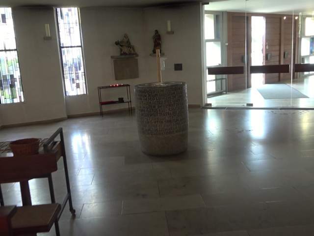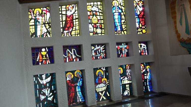 Im Jahr 1963 wurde die Filialkirche „St. Bernadette“ in Gerhausen erbaut. Es ist eine moderne Kirche. Das Dach ist zum Turm spitz zulaufend. Zwischen Kirchenraum und Turm, dieser steht separat auf der linken Seite, ist ein großes Foyer. Im Inneren ist an der linken und rechten Wand ein Kreuzweg aus Mosaiksteinen. Der Altarraum ist einfach gestaltet. Links davon ist ein kleiner Altar. Hier ist auch eine Ornamentglaswand, mit 15 Motiven. Adresse: Gartenstraße 5, 89143 Blaubeuren Webseite: http:// www. schwabenmedia. de/Kirchen/Blaubeuren/St-bernadette-gerhausen. php Geodaten: 9RX2+4H Blaubeuren
