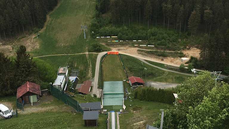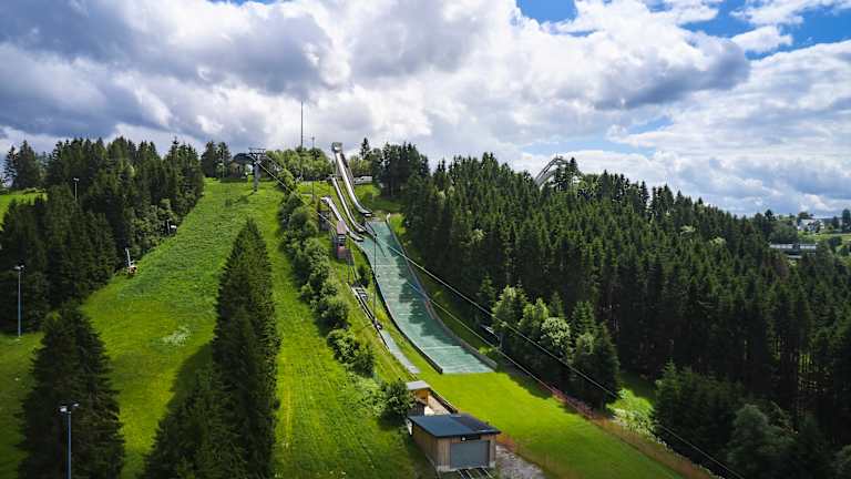 Wenn hier skispringen stattfinden und man sowas noch nicht live gesehen hat, sollte man sich das mal aus der nähe ansehn. ist schon sehr beeindruckend, wie die leute da herunter springen. zur info: die schanze befindet sich NICHT wie auf der karte dargestellt, sondern am schanzentreff weiter nordöstlich. parken sollte man aber dort, wo die karte es zeigt.