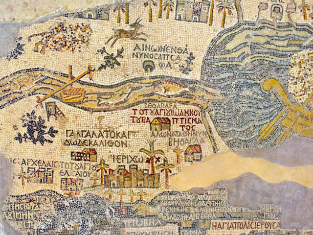 Dieses Mosaik bedeckte seinerzeit den Boden einer byzanthinischen Kirche, auf deren Grundmauern die heutige St. Georg's Kirche errichtet wurde. Es zeigt die älteste Darstellung von Palästina. Kleiner Tip: Sonntags sind die Mosaike in der Kirche nicht zugänglich.