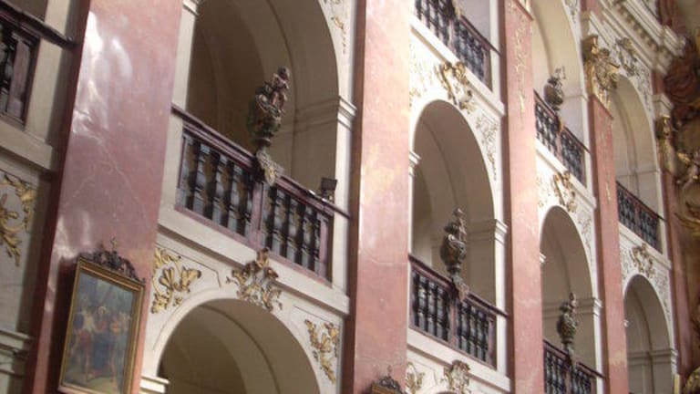 1374 wurde die jetzige St. Thomaskirche geweiht. Das dazugehörige Kloster wurde später in eine Schule umgewandelt. Die hochgotische Basilika ist mit 3 Schiffen und zwei Türmen die zweitlängste Prager Kirche. Die Sakristei nördlich des Chores zeigt noch originales Kreuzgewölbe und Konsolen. Später wurde die Kirche barockisiert und ist mit ihrer überreichen barocken Ausstattung in Prag. Sehenswert sind die 21 Altäre in der Kirche. Es lohnt, diese Kirche anzuschauen, denn es ist ein Kunstwerk.
