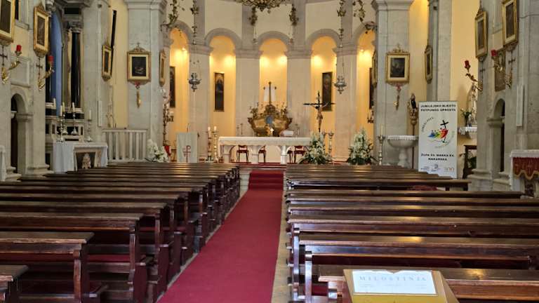 Die Konkathedrale (Stiftskirche) "Sveti Marka" liegt an der Nordseite des Kačić-Platzes im historischen Zentrum von Makarska. Der Bau der Kirche begann im Jahr 1700. Das nie ganz fertiggestellte Gotteshaus im Barockstil wurde 1756 geweiht. Sehenswert sind der marmorne venezianischen Hauptaltar aus dem 18. Jahrhundert und der 1818 geschaffene mit Silber beschlagene Altar der Rosenkranzmadonna. Homepage: http://svmarko.wix.com/zupa-marko-makarska