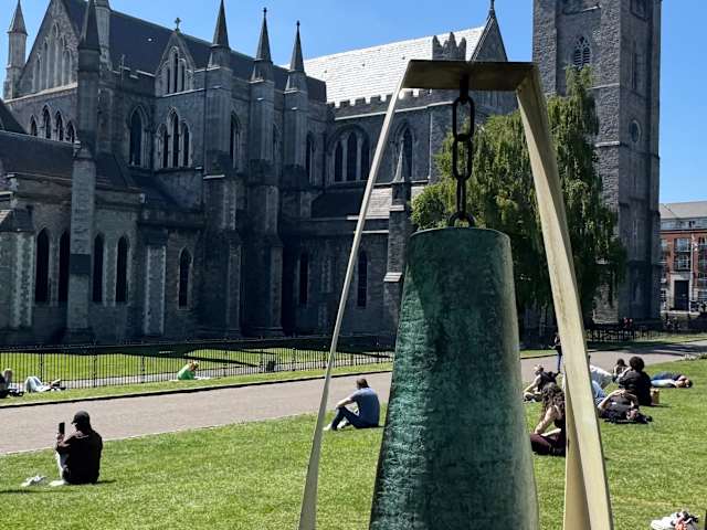 Für 5,50 € bekommt man hier eine Führung durch die größte Kathedrale Irlands. Unsere sehr schnell sprechende Führerin kam aus dem Norden Irlands und war über weite Strecken sehr gut zu verstehen. Schwierig wurde es im hinteren Bereich als ein Kinderchor anfing zu proben. Da wusste man nicht auf wen man hören sollte. Sie erzählte uns dass Jonathan Swift (Gullivers Reisen) hier Dekan war und Oliver Cromwell das Kirchenschiff als Pferdestall verwendete. An einigen Figuren waren Nasen und/oder Ohren abgeschnitten und man vermutete dass Cromwell dafür verantwortlich war. Von der Einrichtung und der Stimmung her gefiel mir diese Kathedrale viel besser als die Christ Church Cathedral.