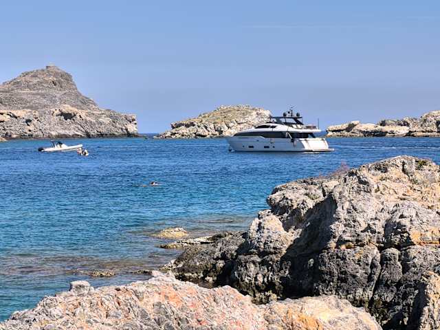 Lindos, seine Burgruine, der Strand und die St. Pauls Bucht sind jederzeit und immer wieder einen Besuch wert. In der St.Pauls Bucht kann man Liegen und Schirme mieten und den Tag mit schwimmen, schnorcheln und einem Besuch in der Taverne am Strand mit gutem Essen verbringen. Allerdings darf man vom Namen der Bucht nicht automatisch ableiten, das hier der Ap. Paulus tatsächlich an Land gegangen ist. Die Wahrscheinlichkeit ist eher gering, weil er bei seiner dritten Missionsreise um 56 n. Chr. von Kos kommend aller Wahscheinlichkeit in Rhodos anlegte um von dort nach Patara weiter zu reisen.